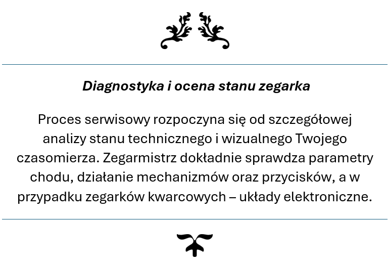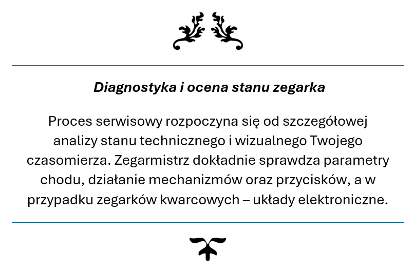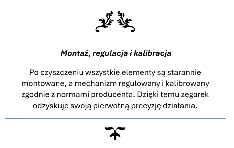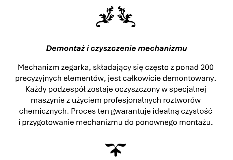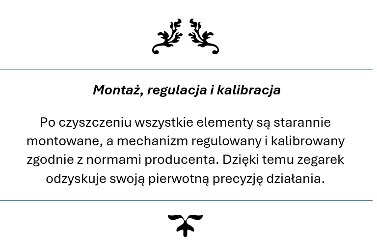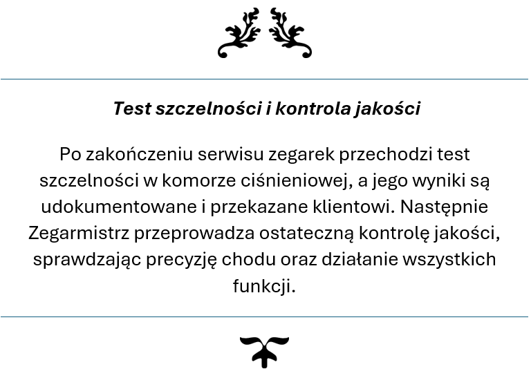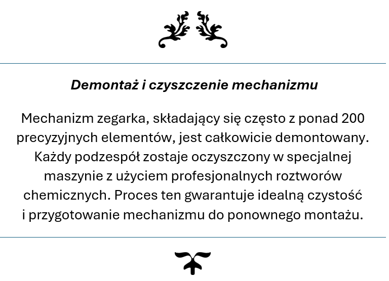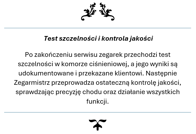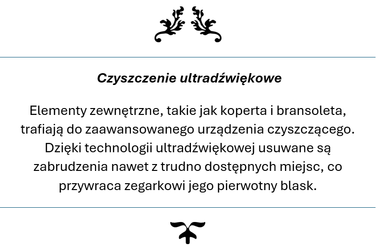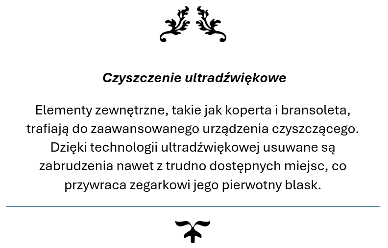 Twój zegarek trafia w ręce ekspertów, którzy rozumieją jego wartość – zarówno materialną i emocjonalną. Przywracamy mu perfekcyjne działanie, pierwotny blask oraz niezawodność, jakiej oczekujesz od prestiżowego czasomierza. Z nami masz pewność, że Twój zegarek jest traktowany z najwyższą starannością i szacunkiem, na jaki zasługuje.