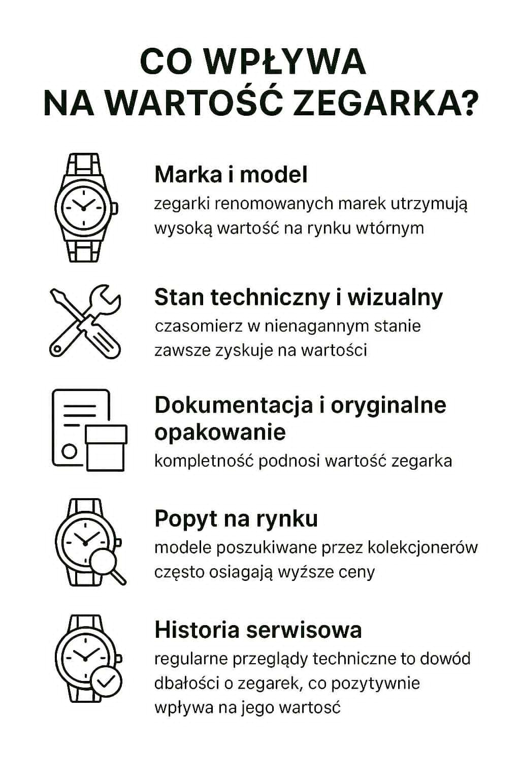 Jeśli chcesz sprzedać swój zegarek, nasz komis to idealne miejsce, by znaleźć uczciwą i rzetelną wycenę. Przyjmujemy czasomierze w bardzo dobrym stanie technicznym i wizualnym. Nasz zespół ekspertów szczegółowo oceni Twój zegarek, uwzględniając jego markę, model, stan oraz aktualne trendy na rynku wtórnym.