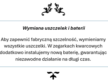 Każdy zegarek poddany serwisowi w Warszawskim Czasie objęty jest 24-miesięczną gwarancją. To nasze zobowiązanie do zapewnienia najwyższej jakości usług oraz pełnej satysfakcji naszych klientów.